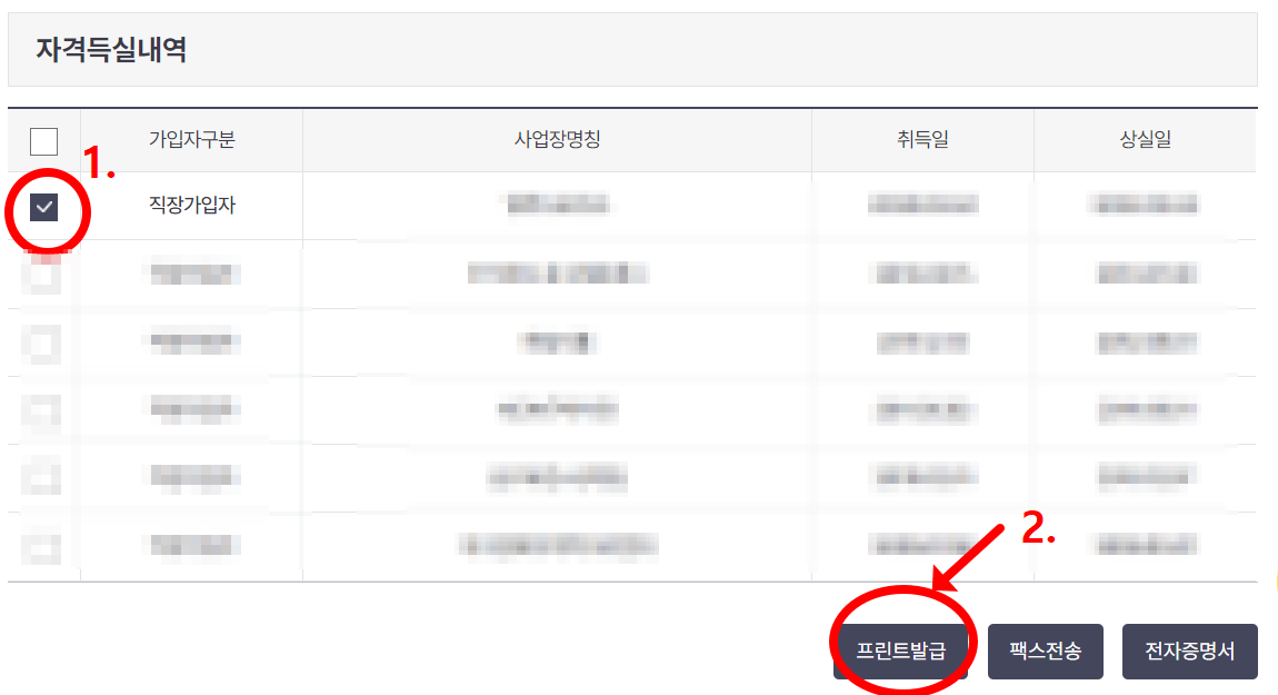 - 메인 화면 중간에 있는 "자격득실 확인서 발급" 클릭