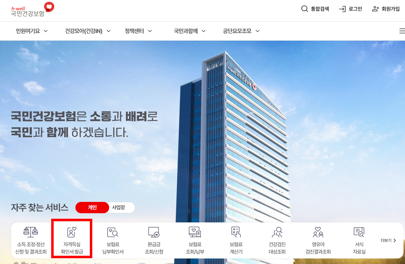 검색 결과에서 국민건강보험공단 홈페이지로 이동합니다.