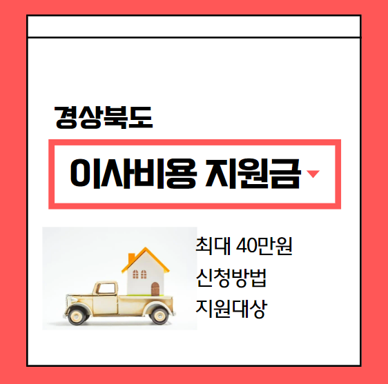 다자녀 가정이라면 경상북도에서 이사비 지원 사업을 시작했습니다! 지원 자격, 신청 방법, 그리고 제출 서류에 대한 모든 정보를 소개하며, 특히 온라인 신청 방법을 쉽게 안내해 드립니다. 이사비 지원금 최대 40만 원은 선착순 지급으로 예산 소진 시 마감됩니다. 빠르게 신청하고 40만원 지원금 받으세요.