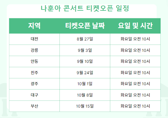 나훈아 콘서트 티켓 오픈 일정은 8월 27일 화요일 오전 10시에 대전의 공연 예매를 시작으로, 일주일 간격으로 강릉 안동 진주 광주 대구 부산 등 지역별로 순차적으로 예매를 할수있습니다.