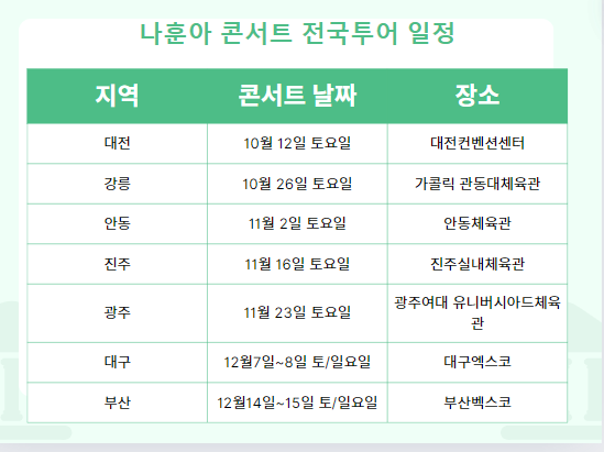 하반기 콘서트 전국투어 일정을 안내해드리겠습니다.