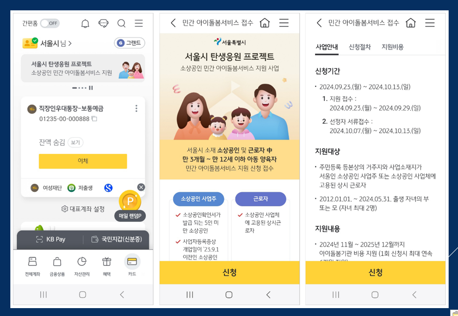 소상공인은 일과 육아를 병행하는 데 많은 어려움을 겪고 있습니다. 서울시 민간 아이돌봄 서비스는 육아 부담을 덜어주고, 동시에 사업에 집중할 수 있도록 돕는 제도입니다. 해당 자격을 충족한다면 마감되기전 서둘러 신청해 혜택을 받아보세요!