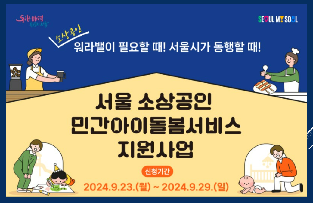 아이를 키우며 사업을 한다면, 야간이나 휴일에 아이를 맡길 곳이 없어서 고민해보신적 있을거에요. 서울시가 소상공인을 위한 맞춤형 아이돌봄 서비스 지원을 한다고 합니다. 이 서비스는 월 최대 60만 원까지 지원받을 수 있으며, 야간과 휴일에도 이용 가능해 돌봄 공백 조금이나마 해소 할 수 있을것 같아요.