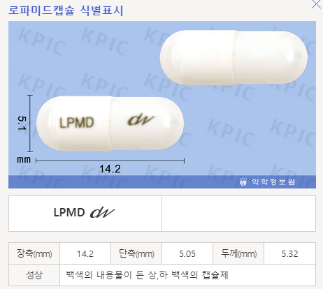 - 시판 제품: 로파미드캡슐, 로파인캡슐, 로프민캡슐