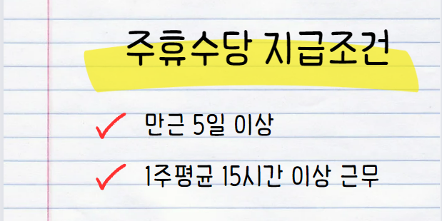 이제 주휴수당에 대해 알아보겠습니다. 주휴수당을 받기 위해서는 다음 두 가지 조건을 충족해야 합니다.