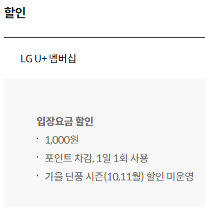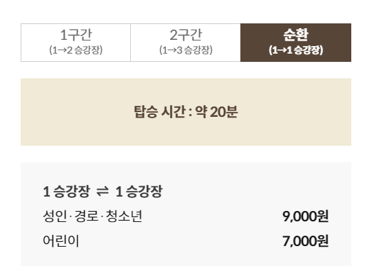 - 가을단풍시즌인 10월~11월 요금할인 적용불가하며, 광주시민 할인만 가능합니다.