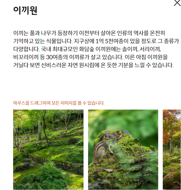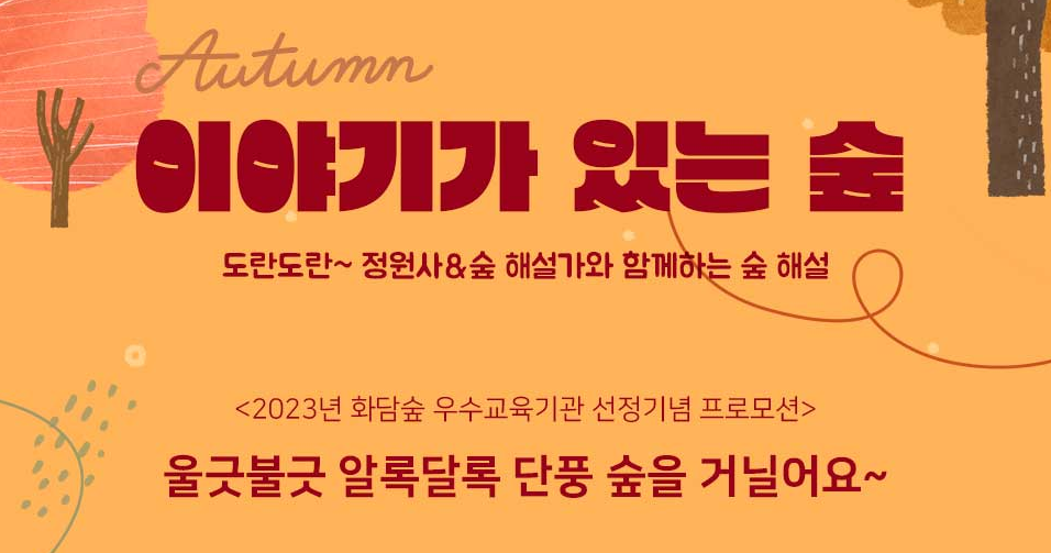 숲해설프로그램은 화담숲의 계절별 다양한 꽃과 나무들의 이야기를 들으면서 힐링할 수 있는 숲 해설 프로그램이에요.