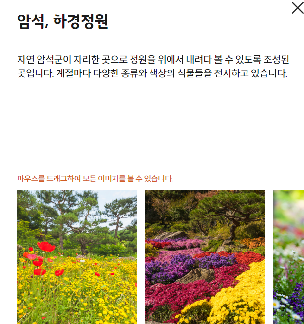 중요사항: 화담숲 입장과 모노레일 탑승은 예약 시간 외에는 불가하므로, 반드시 예약 시간을 준수해야 합니다.