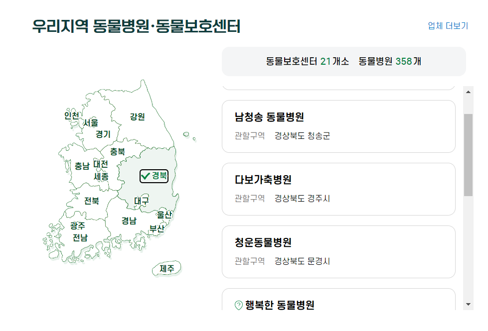 - 국가동물보호정보시스템을 통해 현재 위치 기반으로 병원을 검색합니다.