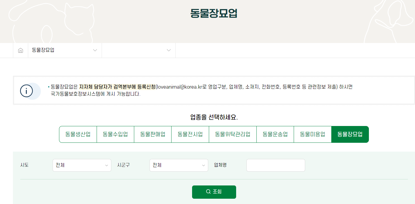 - 검색이 안 되는 경우, 허가(등록) 번호나 지역 조건을 설정해 찾을 수 있습니다.