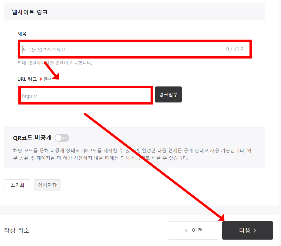 ② 웹사이트 링크 제목을 입력하고 변환하고자 하는 사이트의 URL을 입력합니다.