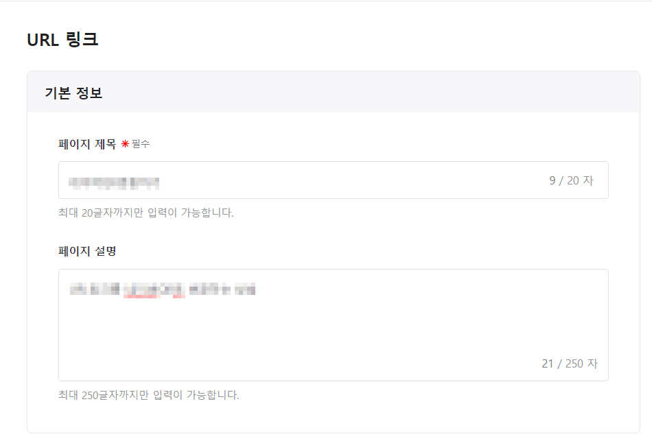 ① URL 링그 기본정보를 입력합니다.