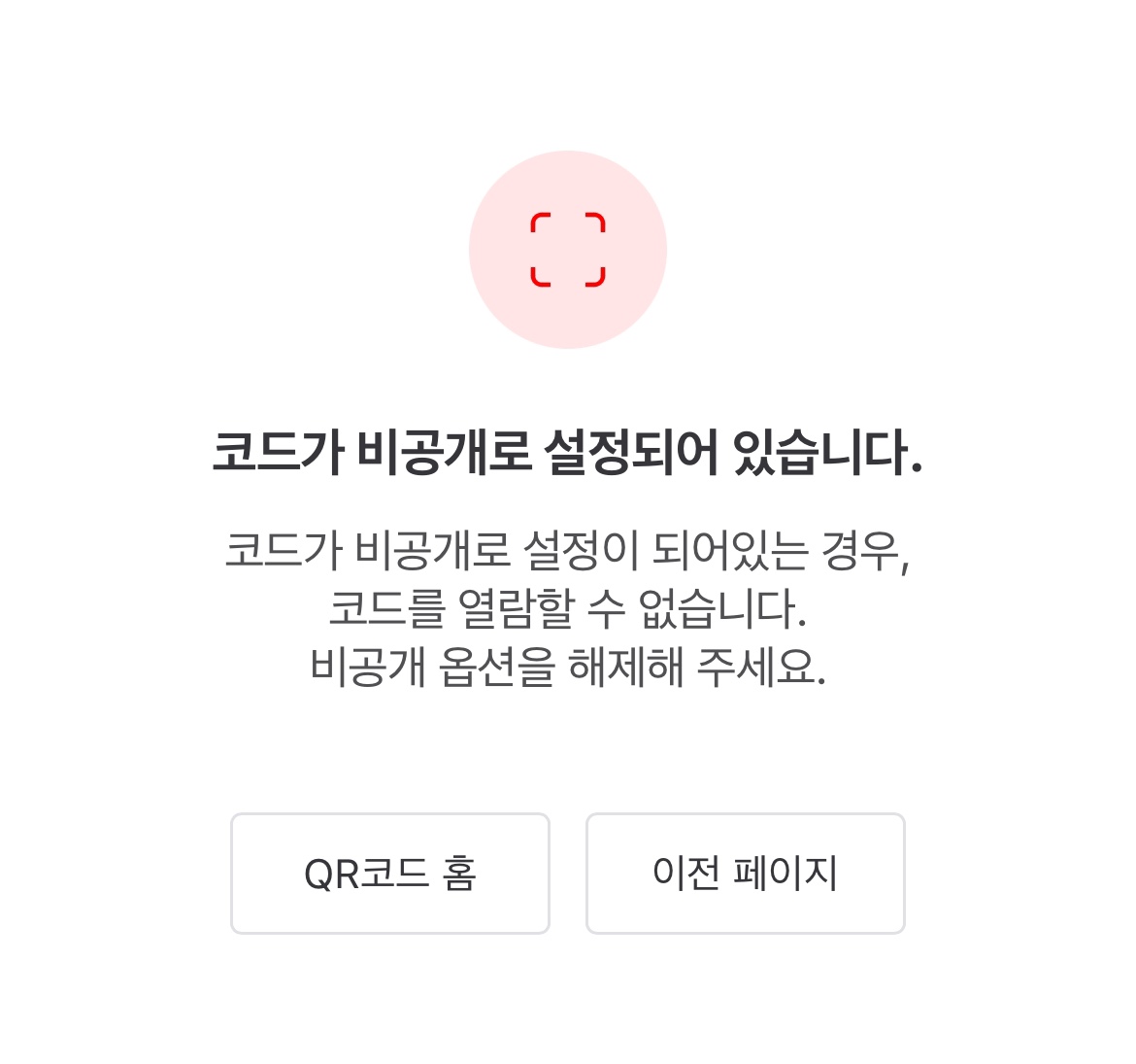 이때 QR코드 비공개 OFF를 눌러줘야 외부공유가 가능하니 꼭 확인하세요.